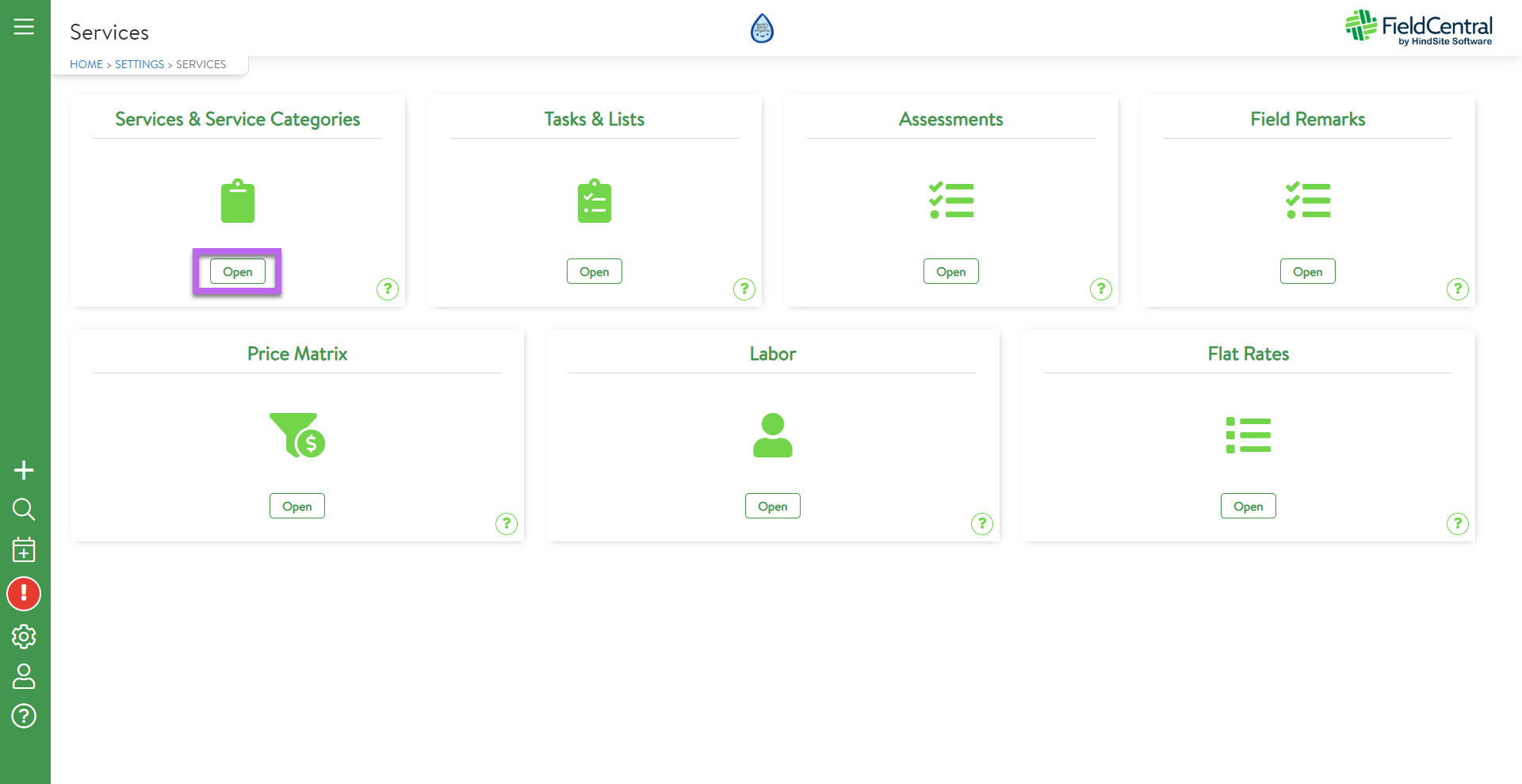 FieldCentral accounts come with a few default Service Categories and Services which you are able to edit as needed.