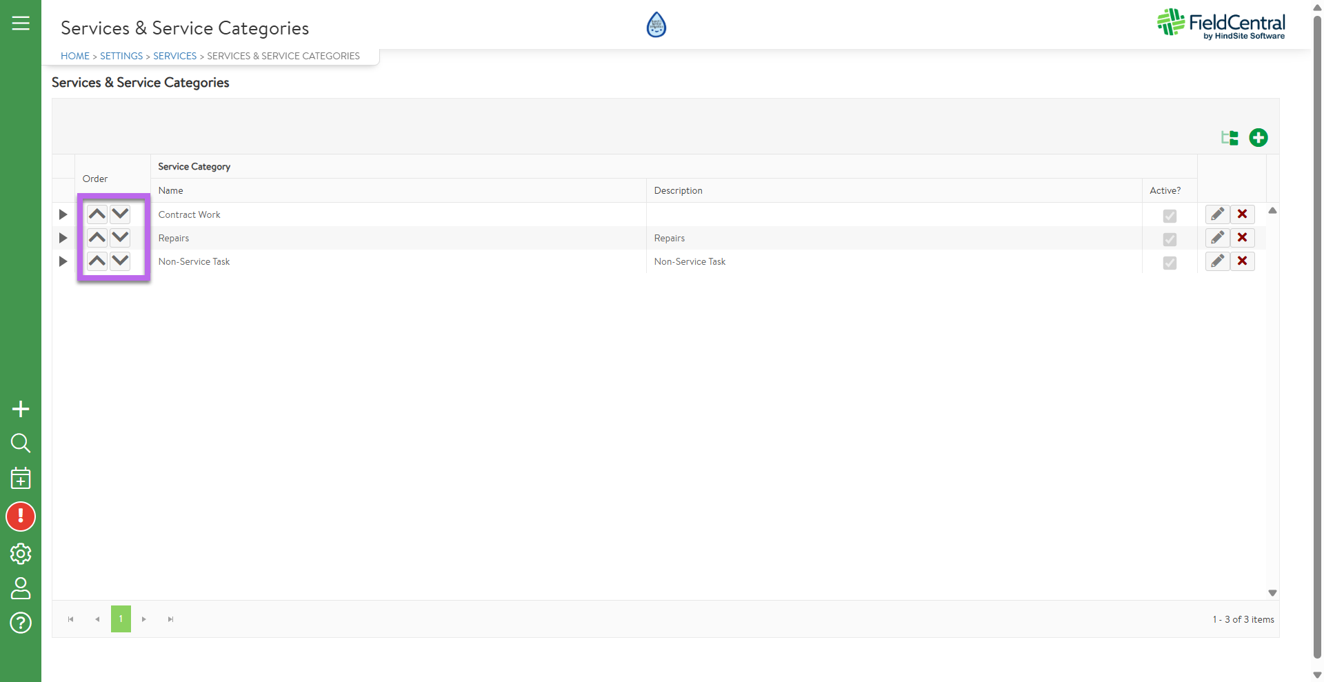 Once the Service Category is created, it will be added to the list and users can use the arrows to re-order as needed.