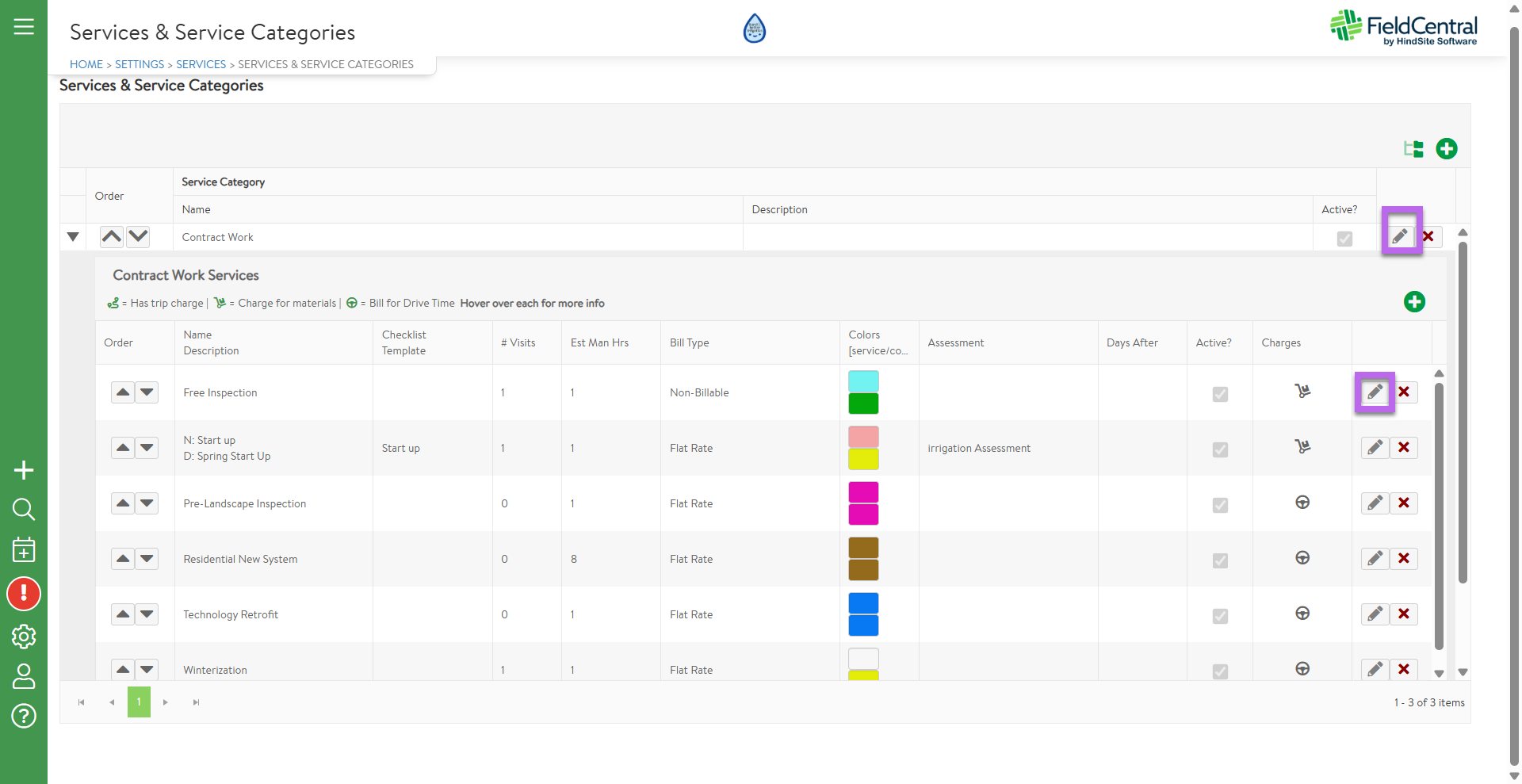 Select the corresponding pencil icon depending on if you wish to deactivate a specific Service or an entire service category.
