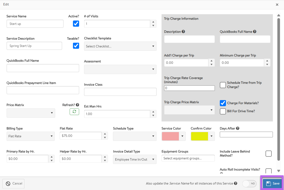 This article will go over the steps to update a Services inside of FieldCentral and outline the ‘Update all Instances’ function.