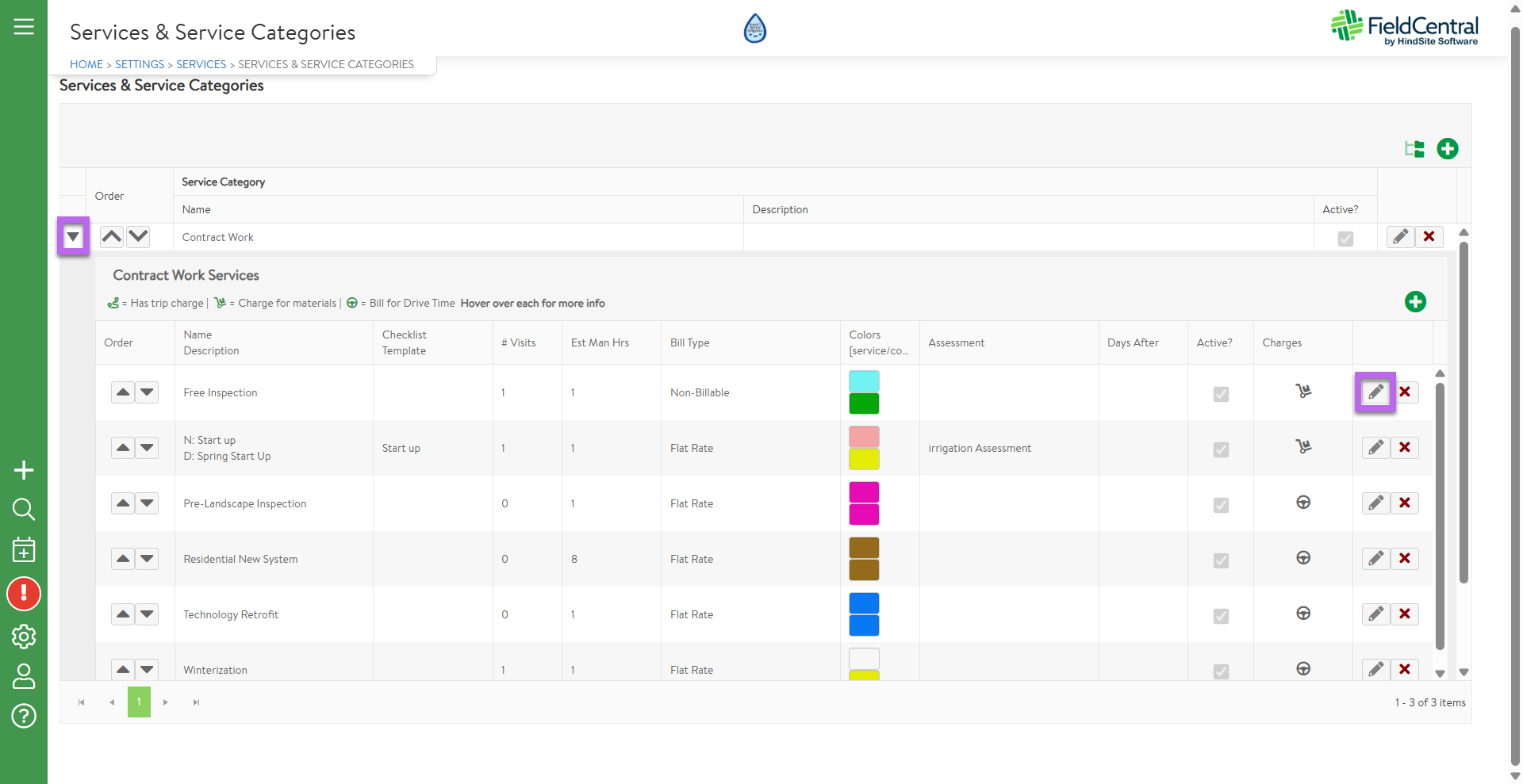 Use the arrow on the far left of the service to expand that Service category and view the associated Services.