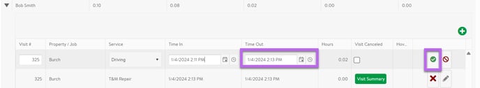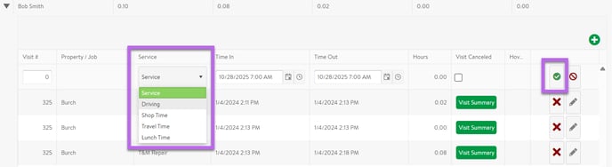 For Service and Driving you’ll have to make sure to enter in the Visit # that you’re tying those times to.