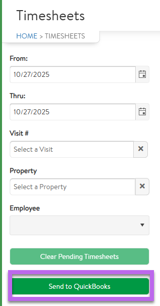 Once you’ve reviewed the times and made the necessary adjustments you can then click the Send to QuickBooks button and that will load these times into a ‘Pending’ state.