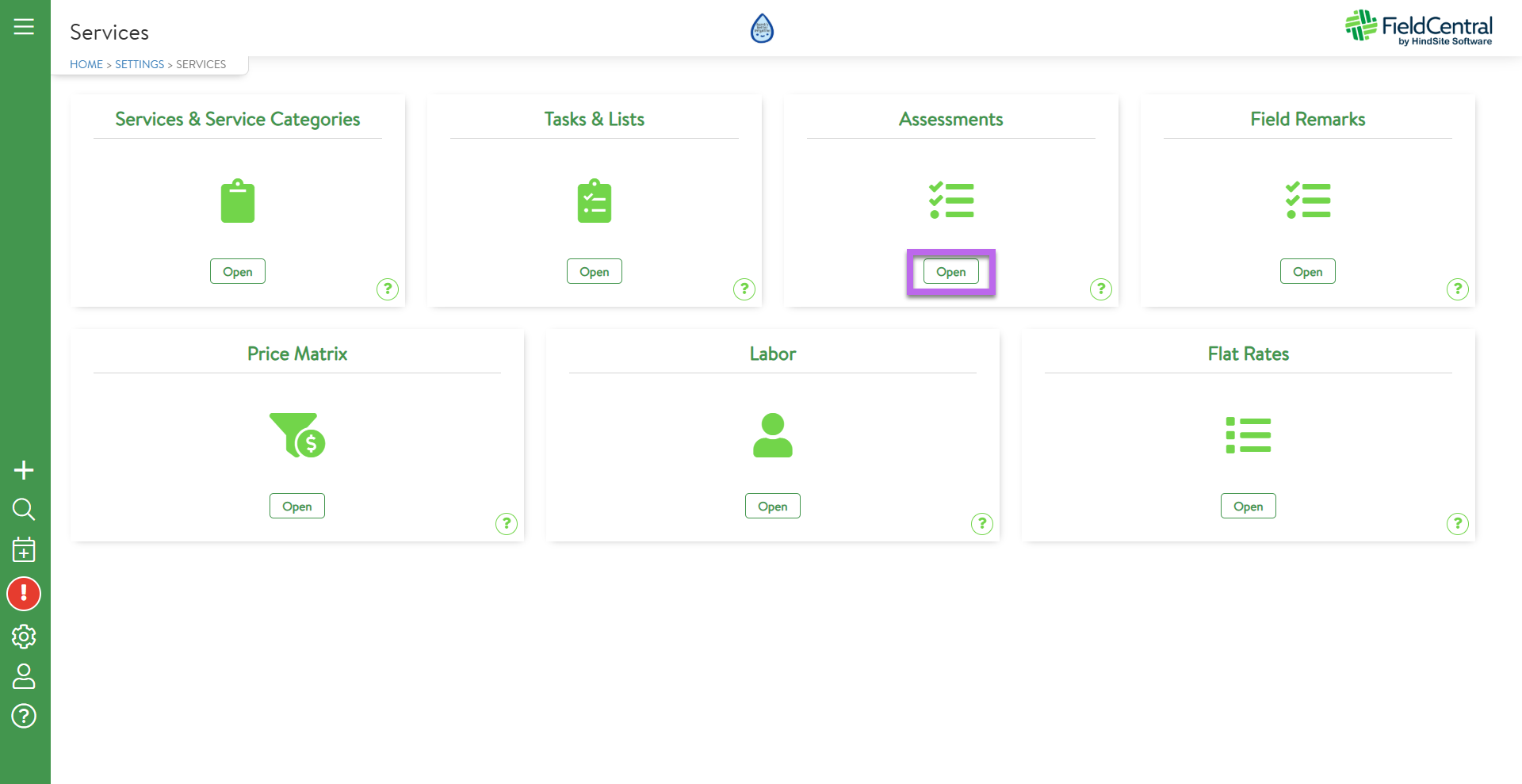 Once you have logged into your FieldCentral web account, navigate to the Settings page either via the Main Menu or the quick access panel.