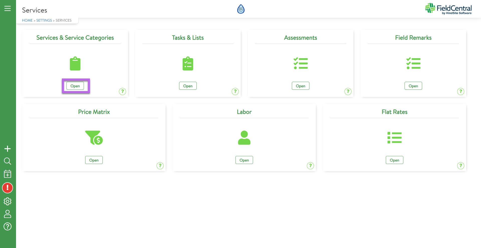 Once you have setup your assessment/leave behind settings, navigate back to Settings > Services and select Services & Service Categories.