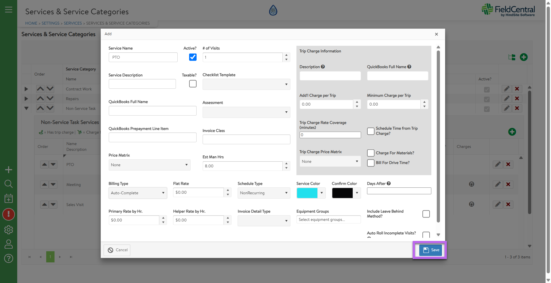 Since we do not want these tasks to generate invoices, this form will be completed slightly differently from regular Services.