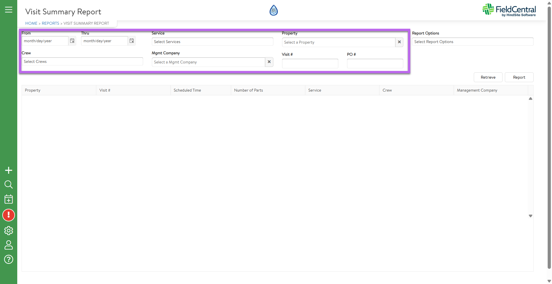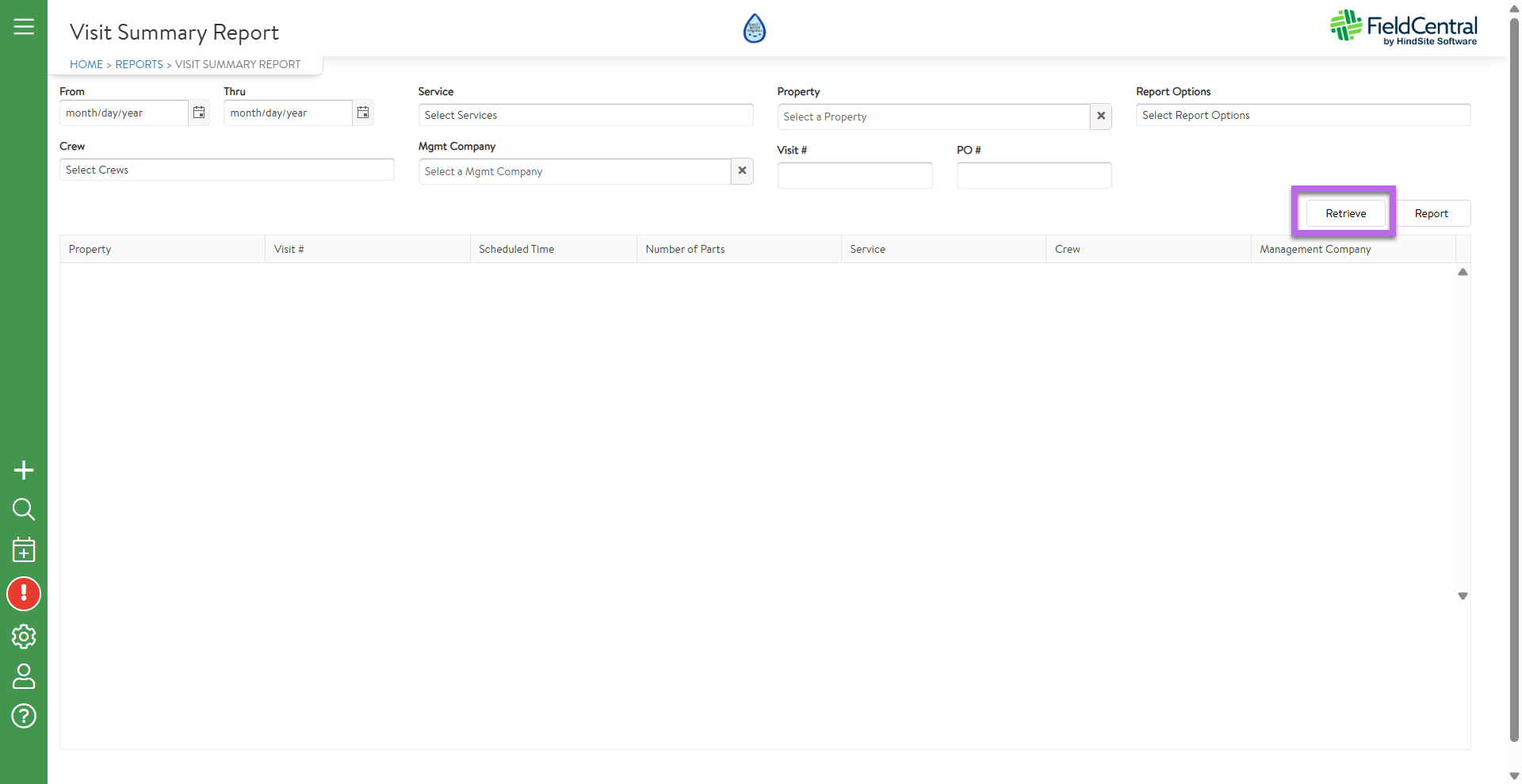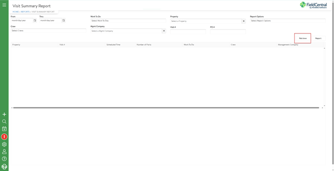 After adding the appropriate filters, the user would click retrieve to get a preview of those visits.